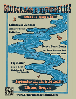 January 23-25, 2025 in Florence, Oregon at the Florence Events Center. An annual 3 day music festival featuring bluegrass, Americana and folk music. This year’s event will feature Della Mae, Kristen Grainger and True North Tony Furtado and Luke Price, Whiskey Deaf,, The Henhouse Prowlers, Crying Uncle Bluegrass Band and